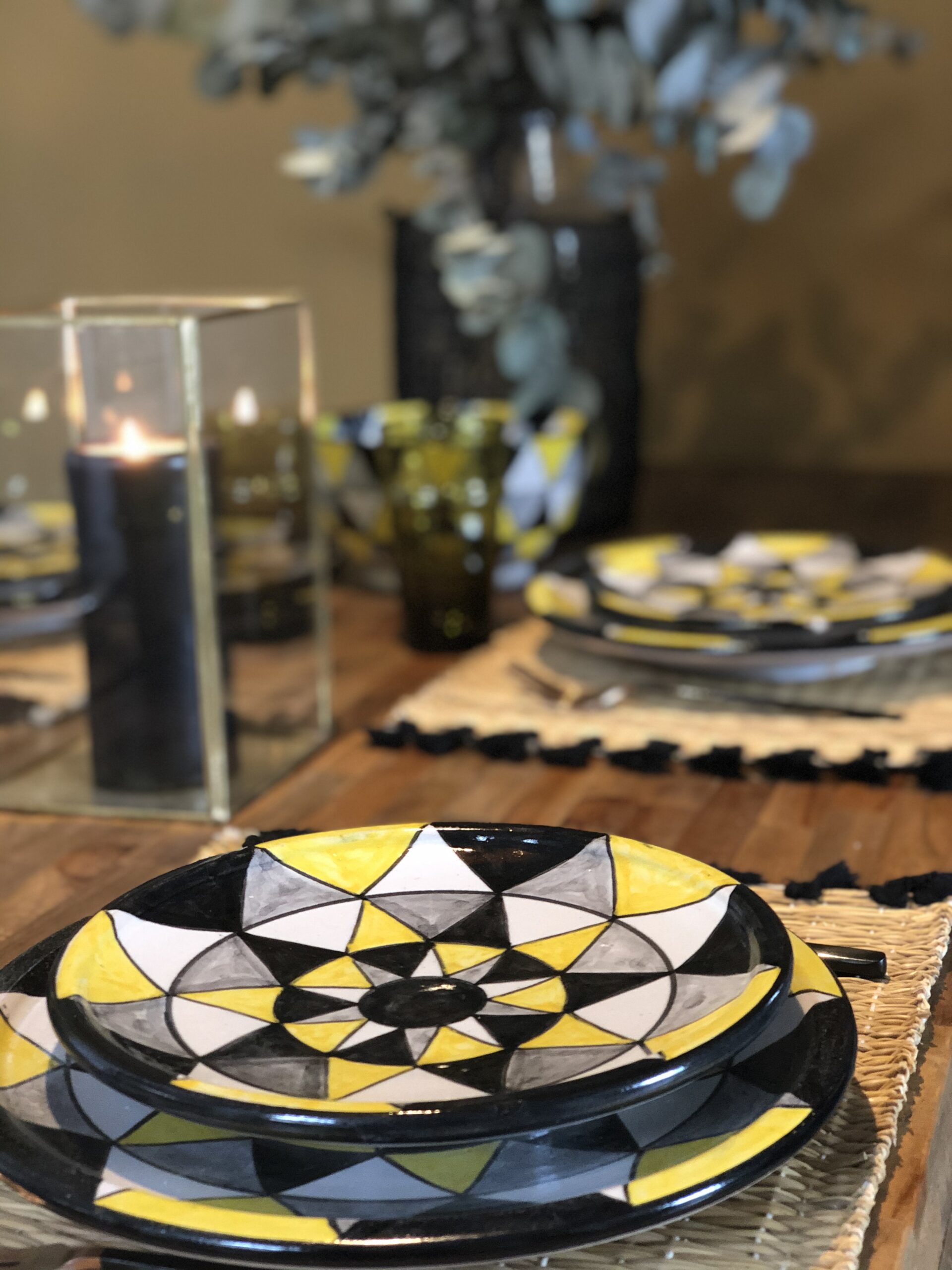 Assiette avec motifs triangle jaune et noir