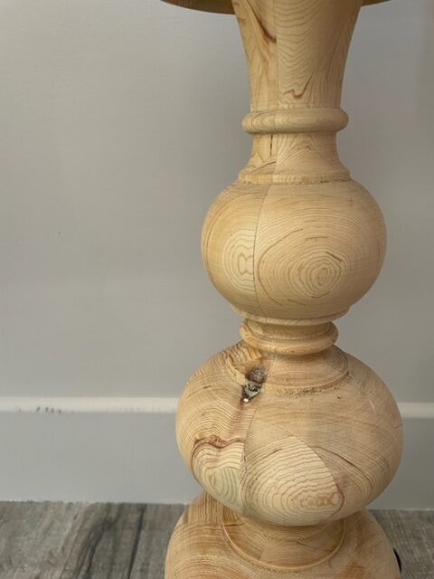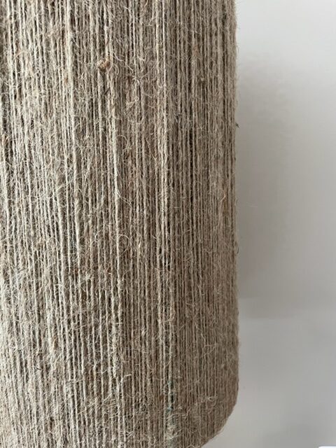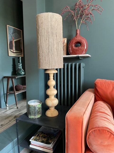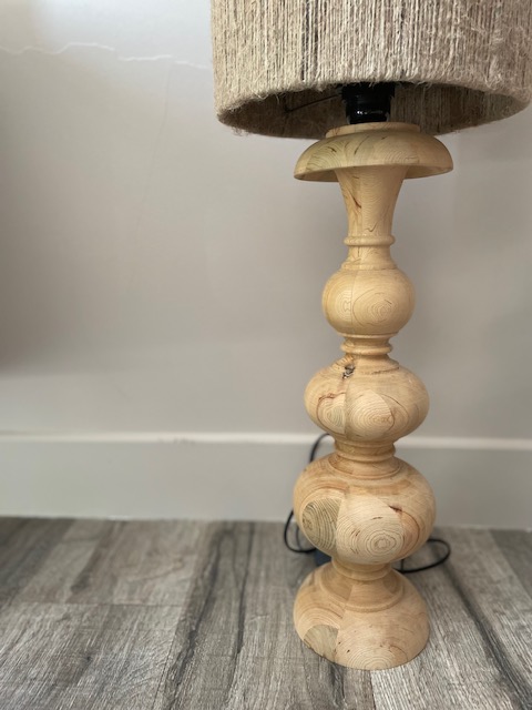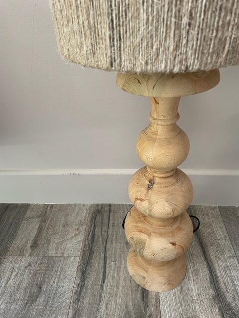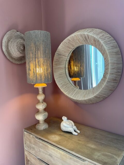 Lampe en bois brut multi boules et abat jour en cordes réalisée à la main par les artisans marocains.