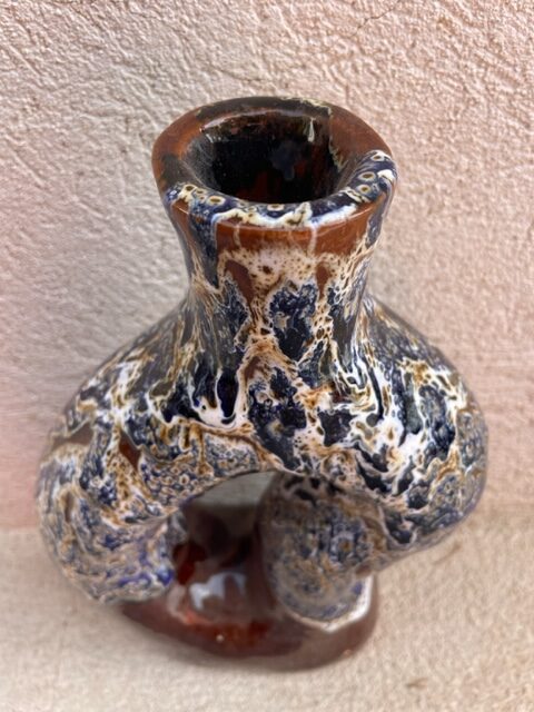 Vase “Vintage” ajouré céramique bleu et marron
