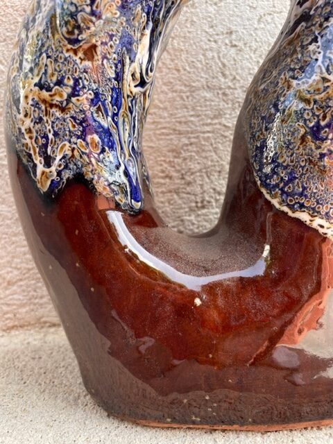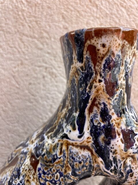 Vase “Vintage” en céramique émaillée bleue et marron réalisée à la main par les potiers marocains.